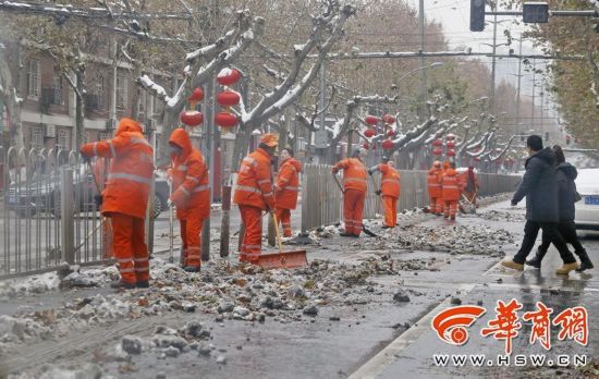 西安市工商局也投入干部職工1875人次,清除單位及道路地面冰雪;督促農貿市場、物流市場、超市等經營場所投入除冰雪人員。6日上午,各區縣教育局所屬學校也組織后勤總務人員清掃積雪。