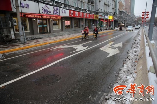 1月7日,在西安市咸寧路上,在寶馬車打滑的路段上,早上下雪后,下午已經看不到積雪。 華商記者 鄧小衛 攝影報道