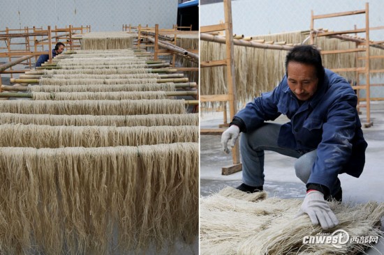 安康石泉縣中池鎮軍民村,56歲的馮宣江請了10人用8天時間加工了2萬多斤粉條,每斤粉條有3元錢的利潤,除了做粉條另一項收入是養豬,分兩批一年時間一共養了600頭豬。做粉條、養豬兩項加起來一年的純收入達20萬元。馮宣江是村里的致富能人,自己富了,還帶動了不少貧困戶。6jm安康新聞網