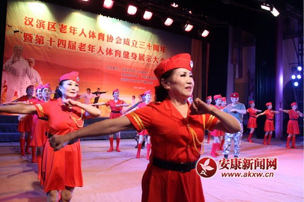 老人們用體育健身展示慶祝漢濱區老體協成立30周年