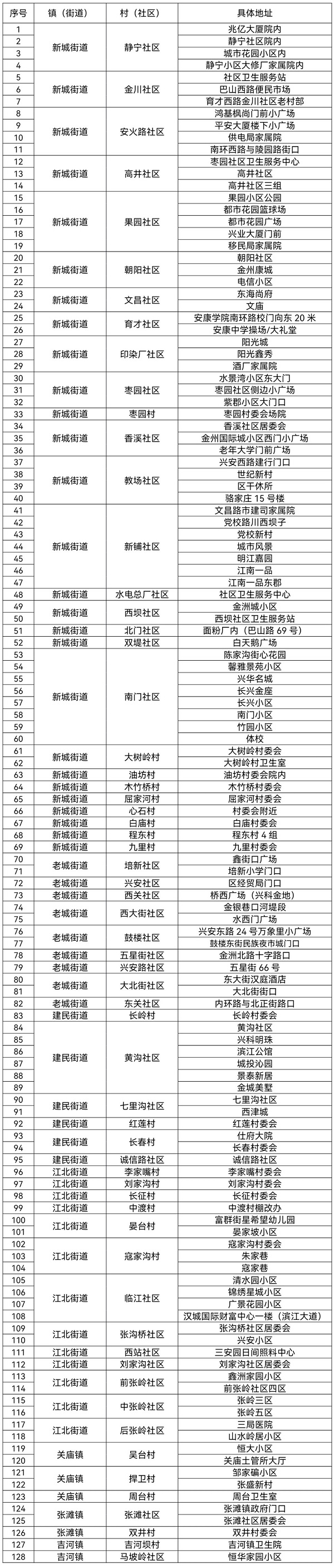 共設置128個采樣點(見附件),由各街道辦、鎮政府統一安排采樣點設置、人員組織、秩序維護。檢測對象按照街道辦和鎮政府要求,分時段有序到指定地點進行采樣,避免人員聚集。