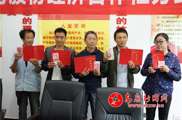 “讓每一戶貧困戶都享受到“三變”紅利,這是我們村兩委班子和工作隊干部的共識。”賈洪平說,這幾年隨著脫貧攻堅的開展,很多貧困戶都離開了土地搬到安置點居住,為了確保貧困戶都能住的安穩,生活有保障,村上特意借這次“三變”改革契機,為每戶貧困戶虛擬配股5000元加入村集體經濟合作社,按比例進行合作社創收分紅,確保讓每一戶貧困戶都成為合作社的“股東”,并享受相應的利益。“明年分紅的時候不信你再來看看,相信發給貧困戶的 ‘紅包’會更鼓!更多!”該村第一書記吳鵬開心地說道。