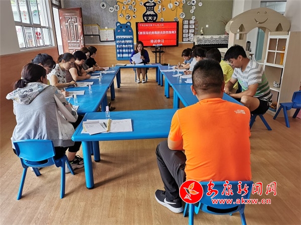 演練前,園領導對該園的“兩案九制”、《幼兒園新型冠狀病毒肺炎防控指南》、師幼心理健康教育等方面進行培訓,詳細講解此次演練流程,明確人員分工及站位,讓全體成員熟練掌握幼兒晨間入園、下午離園和疫情突發(fā)情況的應急預案處置流程和操作方法。