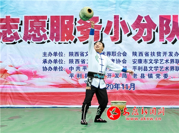 本網訊(通訊員 王韜)11月25日,平利縣老縣鎮錦屏社區文化廣場人潮如織,熱鬧非凡,陜西省文聯文藝志愿服務小分隊以“決戰脫貧攻堅 決勝全面小康”為主題的慰問活動在此火熱上演,20余名藝術家們以舉辦慰問演出、為當地各條戰線的勞動模范和先進人物贈送書畫作品、助農扶貧直播帶貨、文藝培訓等活動形式,讓2000余觀眾在家門口享受了一道別開生面、美味絕倫的文化大餐。