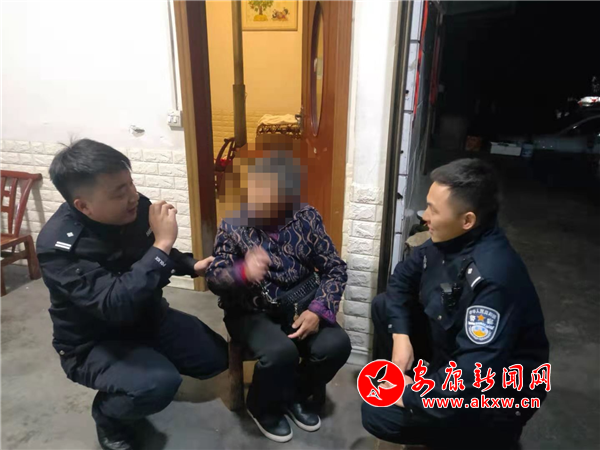 得知老人的身份信息后,民警聯系到竹溪縣龍壩派出所,經核實,老人屬于龍壩派出所轄區村民,龍壩派出所表示將立即趕來接老人回家;細心的民警又在老人包內的夾層中發現了一張記有電話號碼的紙片,民警立即撥通電話,接通電話的是老人的女婿,女婿完全不知道老人已經走到陜西來了,聽到消息后焦急萬分,表示會立即過來接老人回家。為了防止老人淋雨感冒,民警帶老人到附近的住戶家中取暖。經過近五十分鐘的等待,王某家人和湖北警方趕到陜鄂交界處。