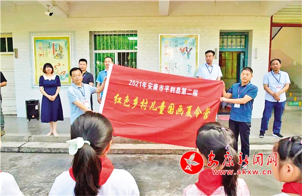 本網訊(通訊員 王韜)7月12日,我市第二屆紅色鄉村兒童國畫夏令營在平利縣老縣鎮中心小學開營。夏令營總指揮、中國版畫家協會會員、安康兒童畫教育專家宋安平主持開營儀式,宋安平向與會人員介紹了首屆紅色鄉村兒童國畫夏令營取得的成果后,夏令營藝術總監、平利縣文聯主席王建春為夏令營授旗,夏令營副總指揮、平利縣老縣鎮中心小學副校長胡洪成接旗并將營旗轉授夏令營學員班長,儀式最后,平利縣教體科技局代表吳文斌宣布夏令營開營。