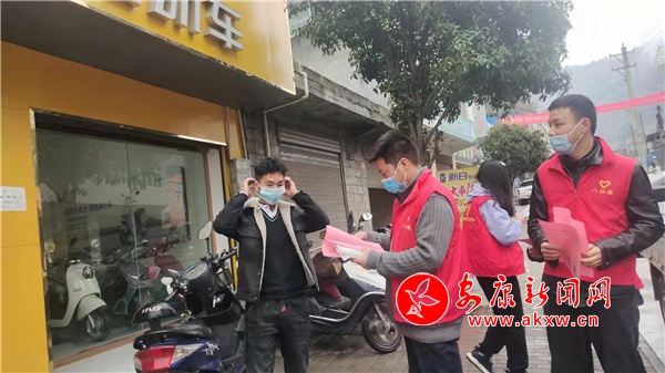 3月25日,平利縣八仙中學志愿者小分隊應邀走進八仙鎮街道,開展疫情防控宣傳志愿服務,他們走進門店超市、小區、市場,廣泛宣傳勤洗手、常通風、戴口罩、測體溫、打噴嚏捂口鼻、少出門、不聚集,做好疫苗接種等疫情防控常識,挨個勸說,挨個引導,充分發揚了先鋒模范作用。 (圖文/李傳祥)Sf4安康新聞網
