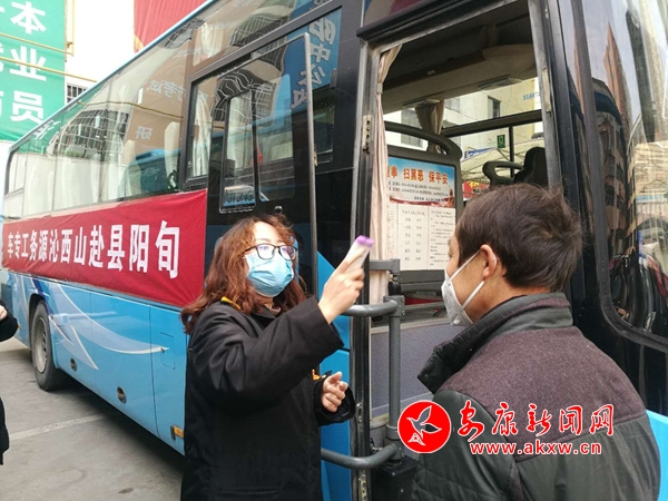今日上午,旬陽縣汽車運(yùn)輸公司里8輛“務(wù)工大巴”整裝待發(fā),車上載著的是來自全縣各鎮(zhèn)126位前往浙江紹興、山西沁源的務(wù)工人員,每輛“務(wù)工”專車上按照核定載客人數(shù)的50%載客。出發(fā)前工作人員對返崗人員進(jìn)行嚴(yán)格疫情篩查比對和健康檢查,并要求路途中全程量體溫、佩戴口罩、按時(shí)消毒等疫情管控,確保用人單位和務(wù)工人員安心、放心。