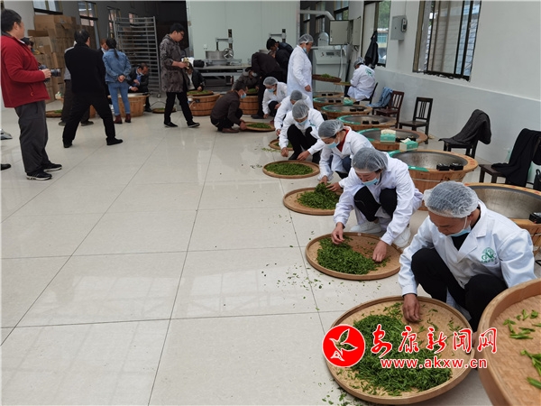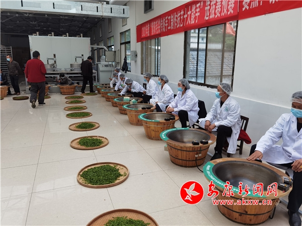 本網(wǎng)訊(通訊員 劉成軍)四月紫陽茶飄香,手工制茶競技忙。 4月7日,由紫陽縣總工會(huì)、紫陽縣農(nóng)業(yè)農(nóng)村局局、紫陽縣人力資源和社會(huì)保障局等單位聯(lián)合舉辦的2021年“紫陽毛尖傳統(tǒng)手工制作技藝十大能手”選拔賽預(yù)賽分賽場在高橋鎮(zhèn)關(guān)南春茶廠舉行。來自全鎮(zhèn)30多名手工制作技術(shù)能手紛紛同場競技,展現(xiàn)傳統(tǒng)手工制茶魅力。