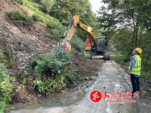 同時,新桃村組織青年黨員、群眾百姓等科學開展生產(chǎn)自救,進行房屋清理、道路搶通、疏通清淤、險情排除等工作。為保障村民正常用水,村委會安排組織運水大軍,修復受損管道,修繕蓄水池;挖土機挖通因嚴重滑坡而造成的受損路段后,群眾自發(fā)帶著鋤頭和鏟子,挖出一條簡易小道,方便救災人員通行。