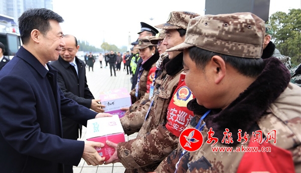郭青一行先后到市公安局漢濱分局綜合執(zhí)法辦案管理中心、中心城區(qū)金州廣場(chǎng)街面智慧指揮聯(lián)控平臺(tái)執(zhí)勤點(diǎn)、漢濱區(qū)新城派出所等地,親切看望公安巡警、特警、交警、執(zhí)勤民警和紅袖章義務(wù)巡邏隊(duì)員等一線執(zhí)勤人員。每到一處,他都與大家一一握手并親切交談。他指出,過(guò)去一年,全市公眾安全感連續(xù)三年全省第一,平安建設(shè)知曉率、掃黑除惡專項(xiàng)斗爭(zhēng)群眾知曉率全省第一,為全市發(fā)展穩(wěn)定作出了突出貢獻(xiàn),凝聚了全市政法系統(tǒng)尤其是廣大公安干警的汗水和奉獻(xiàn),甚至是流血和犧牲。郭青向大家表示崇高敬意,帶去了市委、市政府的關(guān)心和慰問(wèn),并向全市廣大公安干警及親屬拜年。