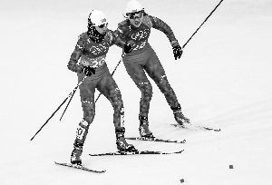 男隊的半決賽,中國隊派出王強和孫清海參加。老將孫清海仍保持著中國越野滑雪短距離在冬奧會上的最好成績,年輕隊員王強是近幾年出現的后起之秀,他曾在2018年國際雪聯越野滑雪中國巡回賽北京延慶站獲得亞軍。一老一新的搭配在第一輪也讓人眼前一亮,比賽一開始中國選手王強迅速發力排在第一位,但隨后在終點處他被接連趕超丟掉第一位置。第二棒老將孫清海一直緊緊跟隨大部隊,以第10名的成績完成交接。但在接下來的比賽中國隊出現體力不支的情況,最終排名末尾第14位。大賽的歷練對王強是一種成長,“王強滑得挺不錯,就是大賽經驗有點少,但經過練習以后長距離比賽肯定沒問題。”隊里的大哥孫清海評價說。